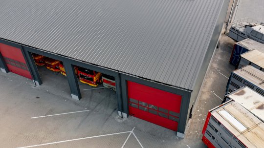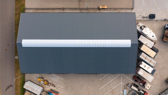 Voor deze gloednieuwe opslagloods mochten wij van A tot Z aan de slag. En zeg nou zelf… dit is toch een plaatje? Allereerst zijn we begonnen met het plaatsen van de fundering en staalconstructie. Daarna zijn de betonpanelen geplaatst en is het dak afgewerkt met stijlvolle SAB-panelen in HPS antraciet matt. Ook de gevels zijn in dezelfde kleur uitgevoerd, wat zorgt voor een strak uiterlijk. Op het dak hebben we een lichtstraat van 44 meter lang en 2.5 meter breed geplaatst, wat zorgt voor een prachtige lichtinval binnen. Ideaal voor het werken in de loods én het perfect tot hun recht laten komen van de vrachtwagens die erin staan. Binnen is alles netjes afgewerkt, met zetwerk in de juiste kleuren en een aantal mooie deuren die perfect passen bij de huisstijl van het bedrijf. Alles klopt, tot in de details. Een project om trots op te zijn, helemaal gerealiseerd door ons team van Wernsen Bouw en Montage.